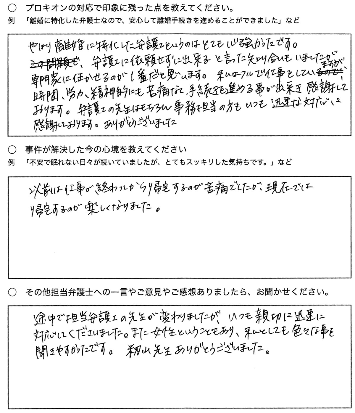 ・その他担当弁護士への一言やご意見やご感想ありましたら、お聞かせください。