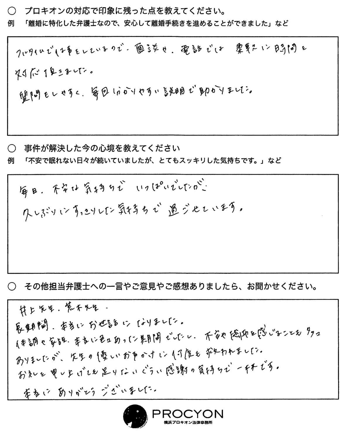・その他担当弁護士への一言やご意見やご感想ありましたら、お聞かせください。
