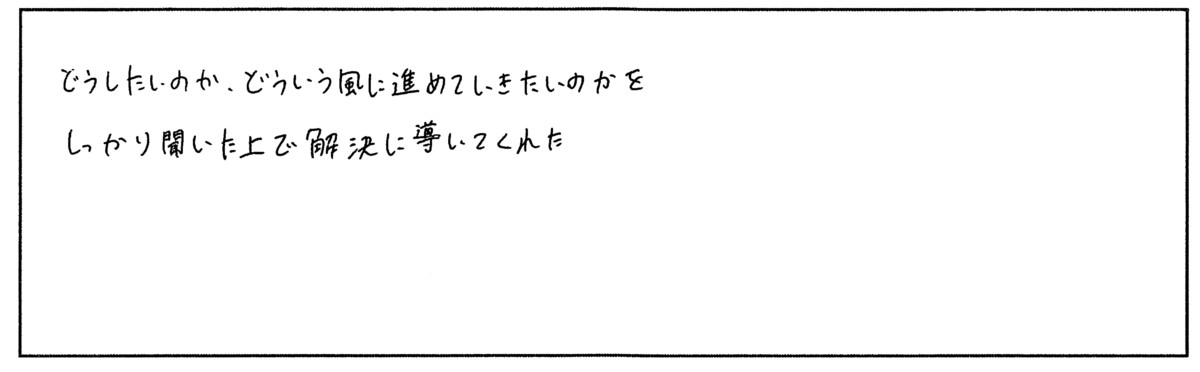 どうしたいのか、どういう風に進めていきたいのかをしっかり聞いた上で解決に導いてくれた。