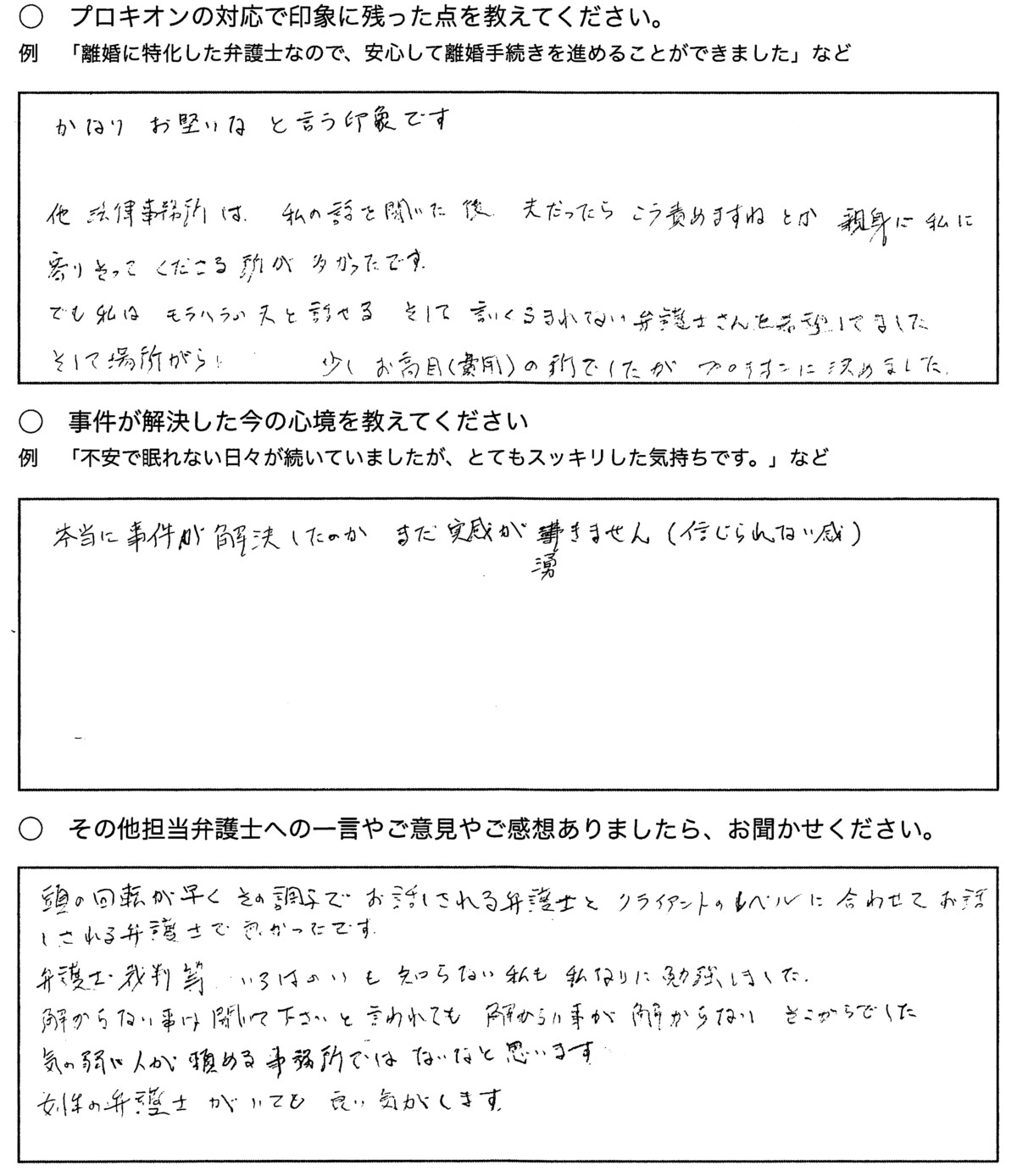 ・その他担当弁護士への一言やご意見やご感想ありましたら、お聞かせください。