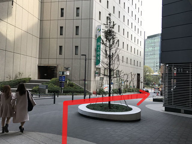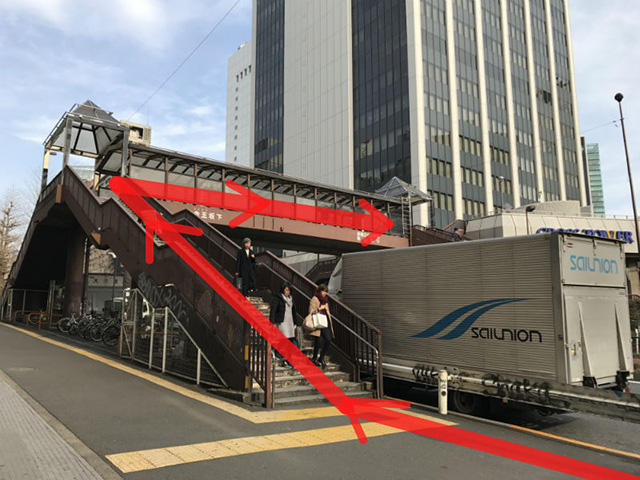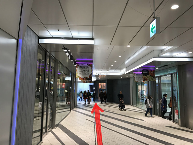 渋谷ヒカリエ」さんの2階に着きましたら、駅を背にして、そのまままっすぐお進みください。ヒカリエの裏口に出ます。
