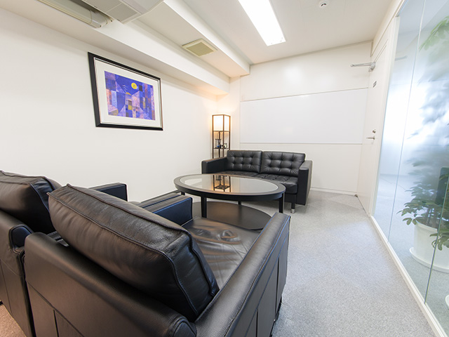お客様の相談スペースです。カフェのような落ち着いた空間で、どうぞおくつろぎください