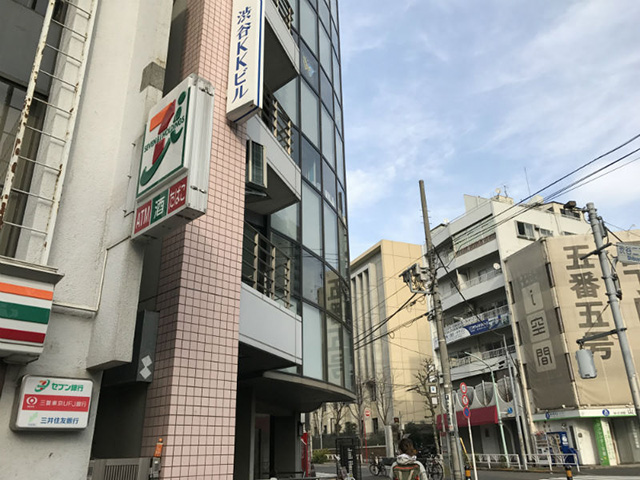 渋谷KKビルのエントランスからエレベーターで5階までお上がりください。なお、常時、扉は開けているので、インターフォンは不要です。